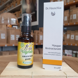 - Huile végétale d’Argousier et masque restructurant pour une beau lumineuse