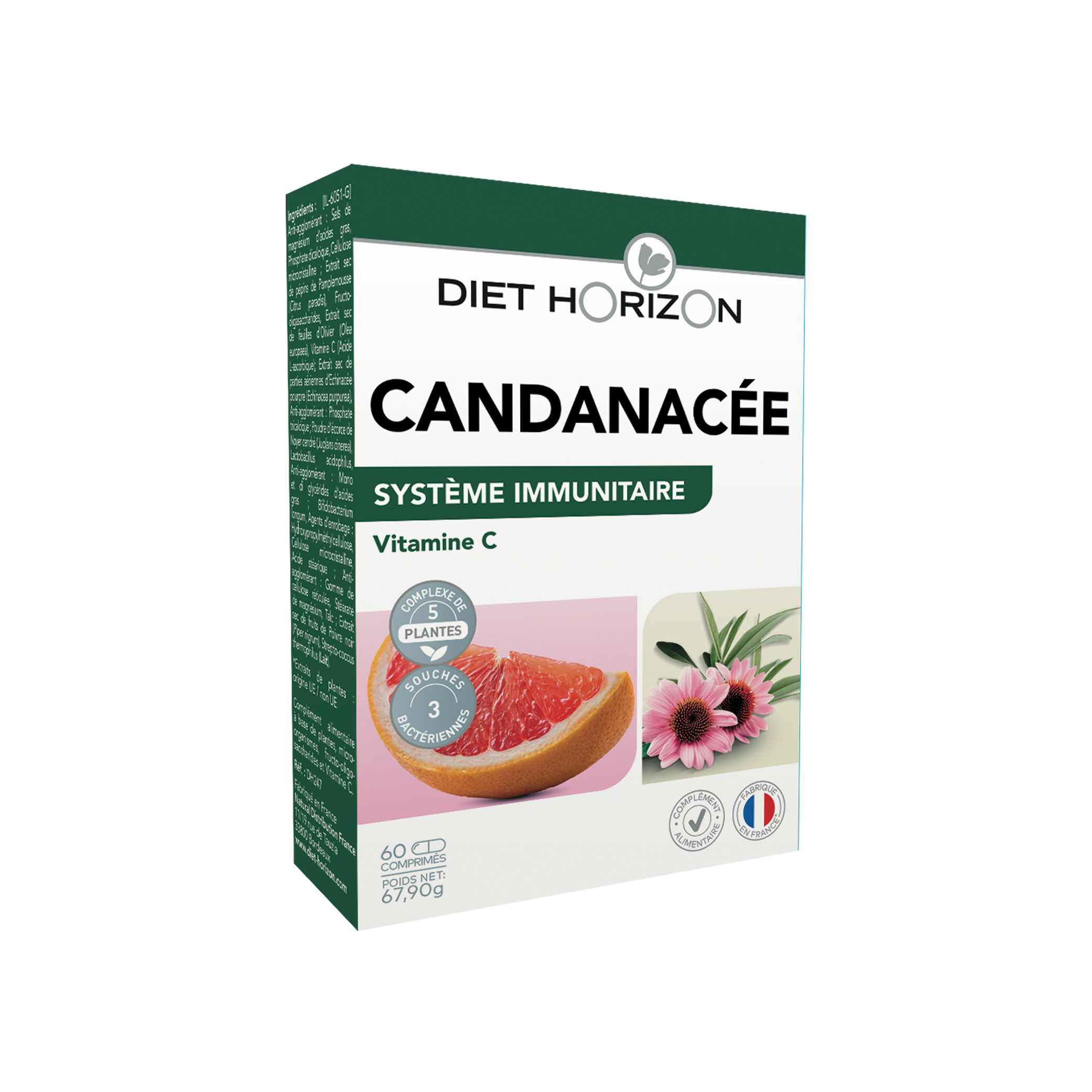 Le candanacée est un complément alimentaire à base de plantes. micro-organismes. fructo-oligo-saccharides et vitamine C.